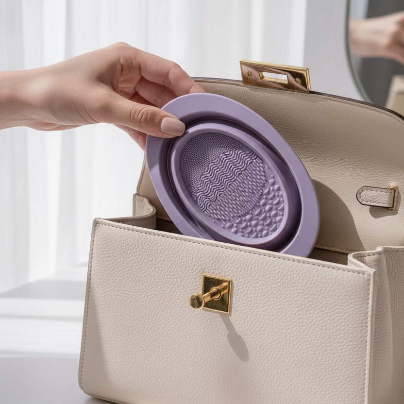 The flexible silicone bowl can fold flat for convenient storage and travel. The spacious design accommodates makeup brushes, tools, and cosmetic products with ease. Ideal for organizing your beauty routine, whether at home or on the go. The durable, easy-to-clean material withstands daily use while maintaining its shape.